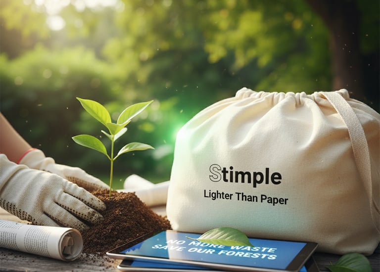 In Italia ogni anno vengono stampati 35 miliardi di scontrini non riciclabili che vengono buttati. Stimple ha come missione il risparmio della carta per un'economia green.